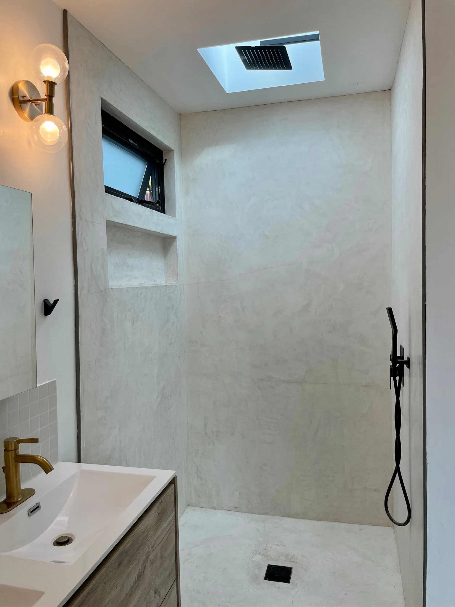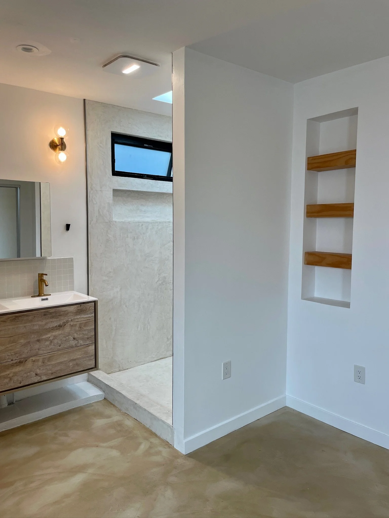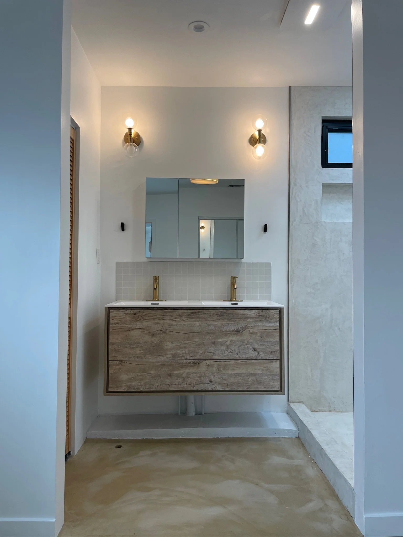 Isabel was inspired by the client’s honeymoon to Bali and the modern sophisticated design elements that they loved while abroad. Using Ikea cabinetry and concrete we were able to make this vision come to life while staying within budget.